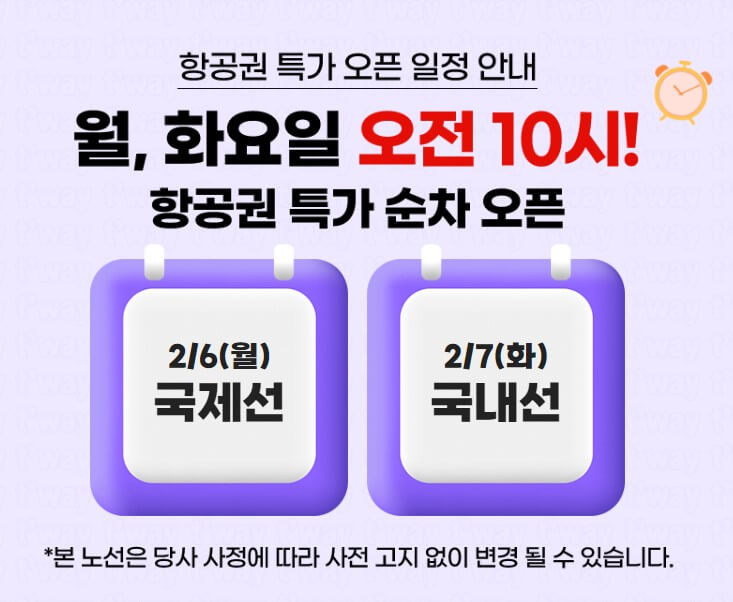 평일 매일 오전 10시에 인천-도쿄 7석/인천-호찌민 4석 총 11석을 선착순으로 지급합니다.